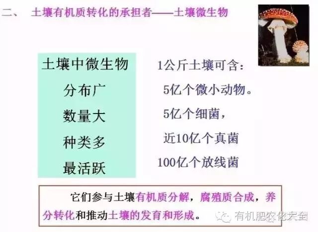 7,土壤有机质供应土壤微生物所需的能量和养分,微生物的活动和繁殖离不开土壤有机质。